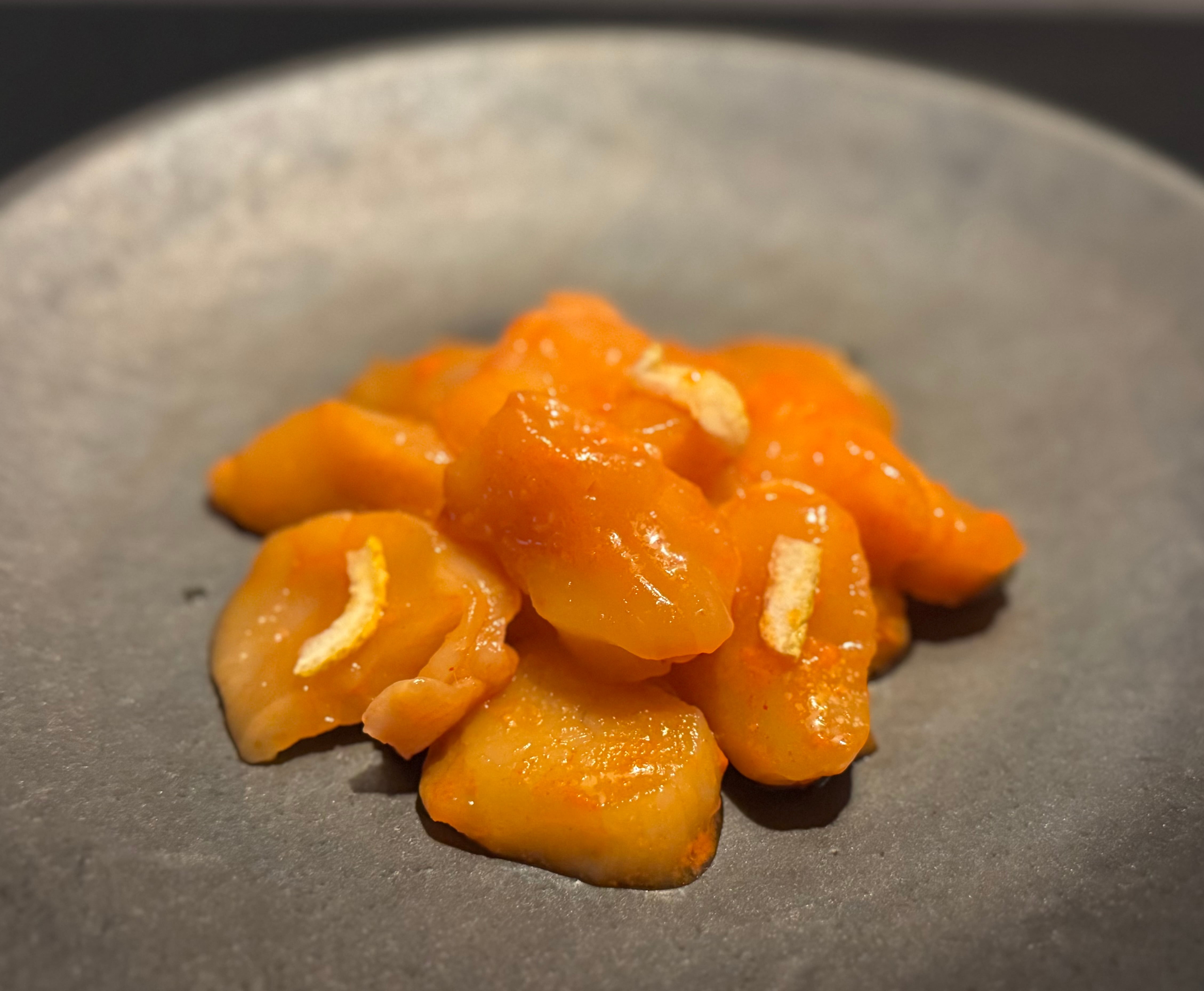 帆立、にんにく、しょうが、ねぎ、ごま、ごま油、コチュジャン、醤油、砂糖、ゆず皮、ゆず果汁
