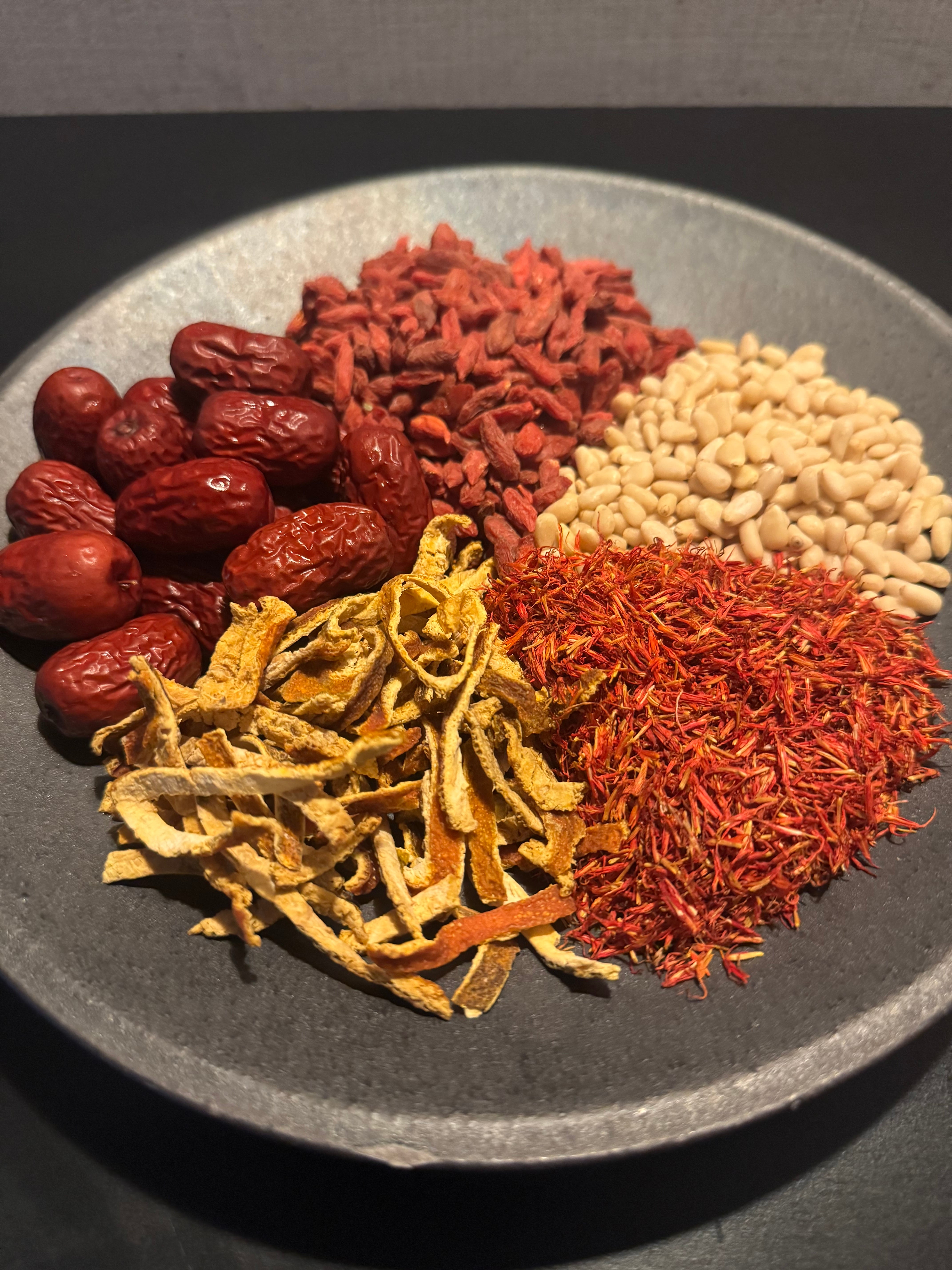 薬膳海老キムチ/200g 【内容】 赤海老にんにく、生姜、コチュカル、コチュジャン、醤油、砂糖、お酢、ごま油、はちみつ、すりごま、ナツメ、クコの実、陳皮、紅花、松の実 【賞味期限】 製造日(発送日)より4日 冷凍保存1週間