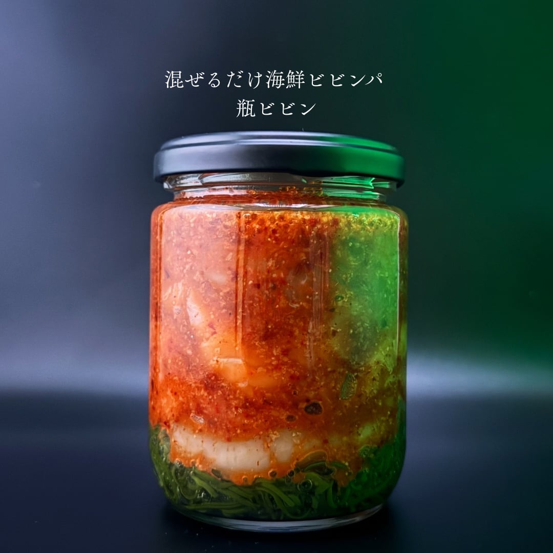 瓶ビビン 200g ご飯と混ぜるだけでカンタン海鮮ビビンパ。 めかぶ、帆立、サーモン、えび、とびっこにご飯と合うよう濃いめに味付け。 ご飯150〜180gに瓶ビビンをかけ、よく混ぜてお召し上がりください。 ナムル、韓国海苔よく合います。